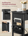 Enhance your living space with this stylish black side table featuring wood grain. This piece comes with built-in socket and convenient USB ports, making it a functional and modern addition to your home.