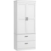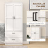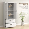 Discover rural charm with the Rootz tall cabinet: thanks to a large cabinet and two wide drawers, you have plenty of space for numerous utensils. Its unique design with black U-shaped handles and shaker doors integrates seamlessly into any kitchen. Adjustable shelves in the pantry also ensure flexible use of space and individual storage options.