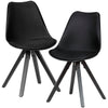 A sleek synthetic leather cover, firm seat shell, and sturdy legs, these chairs offer comfort and durability. With floor-protecting felt pads and a recommended maximum load capacity of 110 kg, they combine style and practicality. Crafted with solid wood and high-quality materials, these black chairs add a touch of sophistication to any dining space.