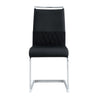 Elegance meets comfort with these modern dining chairs featuring a minimalist design and faux leather and fabric backrest. The wide seat, padded with soft foam, ensures optimal support for long hours without back strain. Plastic feet protect floors and offer stability, while the water-repellent, stain-resistant finish makes cleaning a breeze.
