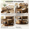 The Rootz Round Coffee Table with Lifting Top, Storage, and Side Shelves in Brown Finish