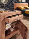A romantic country-style design, exquisite grain patterns, and noble metal handles on the drawer and door, providing a unique and functional storage solution for your bedroom. With carefully crafted dimensions of 50cm width, 60cm height, and 40cm depth, along with convenient internal compartments and a magnetic closure door, this bedside table is a truly unique and meticulously handcrafted piece made from solid acacia wood, ensuring its durability and timeless beauty.