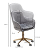 A sleek design and a comfortably shaped seat shell, enhanced by a metal base and soft velvet fabric. With its compact size and 360° rotation function, it is perfect for small work areas, while the durable construction and five hard floor castors ensure both mobility and stability. The chair's elegant gray seat shell and gold base add a touch of sophistication to any space. Crafted with a velvet cover and a lacquered iron base, it offers both comfort and style.
