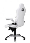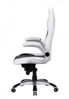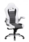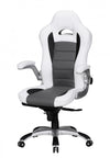 Designed for ultimate comfort and support. The foldable armrests with leatherette pads, gas pressure spring for seat height adjustment, and shapely nylon base provide optimal functionality. Its white and gray back and seat with black stripes, aluminum-colored frame, and padded armrests create a modern and sleek look. With a 5-point multi-block mechanism, anti-shock function, and smooth-running carpet rollers, this chair offers both comfort and stability. Crafted from high-quality leatherette, it combines durability and style.