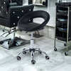 Our Rootz rolling stool is versatile. Depending on the situation, you can comfortably adjust the seat height between 45-57cm. Thanks to the comfortable padding, sitting for long periods of time is no problem. The comfortable backrest provides extra support. Thanks to its modern and elegant design, the swivel stool is particularly suitable for use in cosmetic studios or hairdressing salons. But it is also an excellent companion as a work stool in workshops, doctor's offices or as a practical accessory for the home.Comfortable Padding: The seat and backrest are softly padded, ensuring maximum comfort even during long periods of sitting. Say goodbye to discomfort and hello to productivity.Height Adjustable: The seat height can be flexibly adjusted between 45-57cm, making it suitable for various tasks and users. Customize your seating experience with ease.Durable Materials: Upholstered in high-quality faux leather, this stool is not only stylish but also durable. The stable base with 5 nylon wheels ensures smooth mobility and long-lasting use.Modern Design: With its sleek black finish and elegant design, the Rootz rolling stool adds a touch of sophistication to any environment, be it a salon, workshop, or home office.- Color: Black
