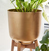 Introducing our Practical Set of 2 Modern Plant Pots, combining elegance and functionality with a harmonious mix of solid wood and metal. Handcrafted and uniquely designed, these pots feature golden-colored buckets, removable racks, and sealed wooden surfaces for lasting beauty and convenience.