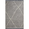 The combination of geometric motifs, soft colors, and fringe details give this rug modern elegance, suitable for any room.