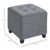 The Rootz Stool: Button Stitching, Linen Look, 35 cm x 35 cm x 35 cm, Gray