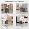 The Rootz Seat Stool with Lid Storage, Foldable Velvety Padded Design, Grey, φ38xh36 cm