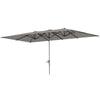 Introducing the Rootz double-sided umbrella, perfect for creating cool, comfortable shaded areas for 4-6 people. With a generous 451 x 264 cm design and UPF50+ protection, this stylish grey umbrella features a durable aluminum mast and a simple crank system for easy operation, ensuring excellent sun protection for all your outdoor events.