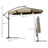 METAL FRAME: A sturdy structure for extra strength to keep the cantilever parasol in place. Connected to the canopy with 8 ribs for stability