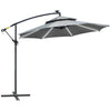 Cool shade during the day and beautiful lighting at night - this Rootz cantilever parasol will make your outdoor area look even more at home. Solar-powered LED lights are attached to the parasol struts and are controlled by a switch. Equipped with a stable mast, eight metal struts and a base, the market umbrella is particularly durable and robust.