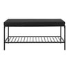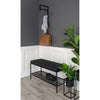 The Rootz bench is a modern addition to your hallway or entryway. Its cushioned seat provides comfort while the sturdy black metal frame ensures stability. With a sleek design, it complements various interior styles while offering a lower shelf for footwear storage.