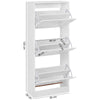The sleek and functional shoe cabinet, designed with three spacious compartments for easy storage and organization of your shoes, featuring integrated handles and a modern white design that seamlessly blends with any decor style. With its practical features and compact dimensions, this cabinet is perfect for optimizing space in your home while keeping your footwear neatly arranged.