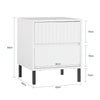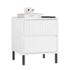 Organize your belongings easily with this Industrial Bedside Table featuring 2 drawers. Made of durable MDF and PB materials, it offers a resilient structure. The black metal legs add an industrial touch, making it ideal for bedrooms or living rooms.