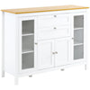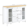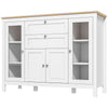 This beautiful white wood look sideboard will bring a classic cozy atmosphere to your interior - living room, kitchen, etc. With 2 cabinet doors with 2 shelves, a double cabinet and 2 drawers, it offers plenty of storage space for dishes, small household appliances and much more.