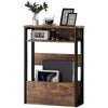 This Rootz side table combines functionality and style, making it an excellent addition to any room. With a two-stage shelf and a chic rustic brown finish, it offers plenty of storage space while featuring a sleek metal frame. Its compact design, rounded corners, and adjustable feet ensure safety and stability on uneven surfaces, ideal for bedside use or as a side table.