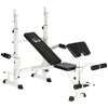 MULTIPURPOSE WORKOUT BENCH: Includes leg press, arm pad for bicep curls, weight bench, barbell rack, weight plate rack and chest press - perfect for bench press, curls and many other exercises. Compact design so you can build your own gym at home.