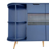 This elegant blue sideboard combines modern design with functionality, featuring glass doors, LED lights, and ample storage space (130×40×80 cm).