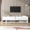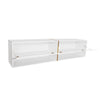 The high-gloss TV cabinet combines modern design with functionality, featuring elegant gold edge stripes and generous storage space ideal for electronic devices and decorative items. It can be wall-mounted or free-standing, adding a luxurious touch to any living room.