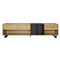 This high-gloss TV cabinet is a stylish and functional piece with dimensions 173.5L x 55W x 38H cm. It features two open compartments, four large drawers, and customizable multi-color LED lighting for an atmospheric atmosphere.
