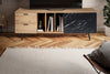- Colour: Body and drawer fronts in oak; door front, handles, and legs in black