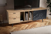 Sturdy and Durable ConstructionCrafted from high-quality foiled chipboard with a chic oak look and marble finish, this TV cabinet is designed to support TVs up to 70 inches, ensuring durability and stability.