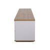 The Rootz modern color block TV cabinet in white finish combines an elegant high gloss finish with a stylish wood grain, offering a unique look for your living room. Generous dimensions of 180L x 38W x 46H cm provide ample space for audio/video equipment and small items.