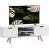 Get a practical and stable shelter for your TV! Two cabinets and two middle shelves perfect for storing consoles, DVDs, and remote controls. Supports TVs up to 65 inches.