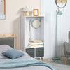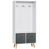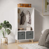 With this wardrobe from Rootz , simplicity becomes the leitmotif in your bedroom. This elegant wardrobe is perfect for storing and organizing your clothes. It features three hooks and two fabric drawers, providing enough space for your clothes and other daily necessities. The raised design with solid wood legs protects your clothes from moisture and dust - a piece that does more than just stand and look good.