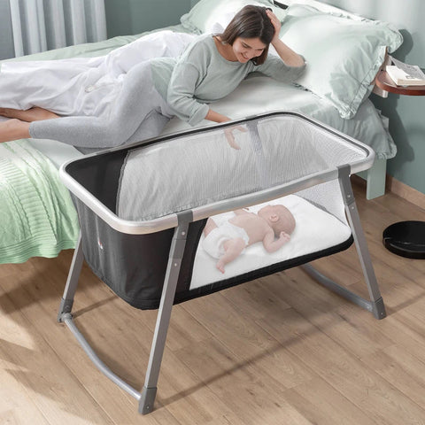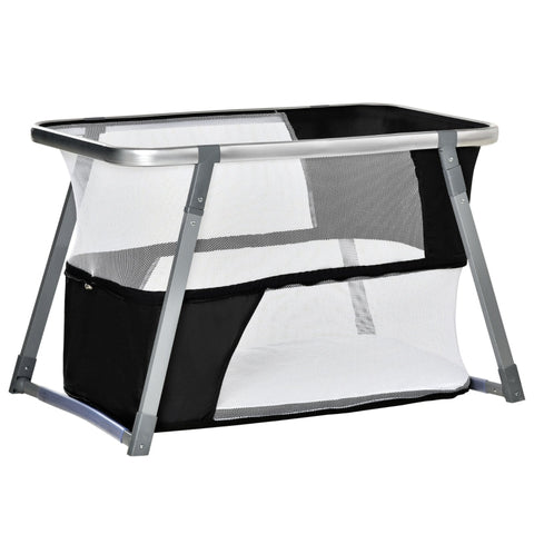 Rootz Baby Cot - Travel Bed - Baby Cradle - Playpen - Foldable - With Mattress - Aluminum/Steel/Mesh/Plastic - Black+White - 99.5 x 60.4 x 65cm