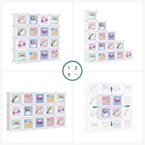 Rootz Children's Wardrobe - Kids Cube Storage System - Wardrobe With Doors - Diy Storage Cabinet - White - 153 x 31 x 153 cm