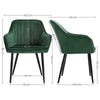 Ergonomic design, 7 cm thick foam padding, high-quality velvet cover and durable, powder-coated metal legs with a load of up to 110 kg - these elements create two solid and comfortable dining table chairs. Even better, the green and black armchairs also have a beautiful look that will bring a comfortable vibe to any room. Wherever you want to sit and relax, these dressing table chairs are ready for you. Whether in the dining room, living room, bedroom, study or sunbathing on the balcony, these chairs are always suitable for moments of relaxation.