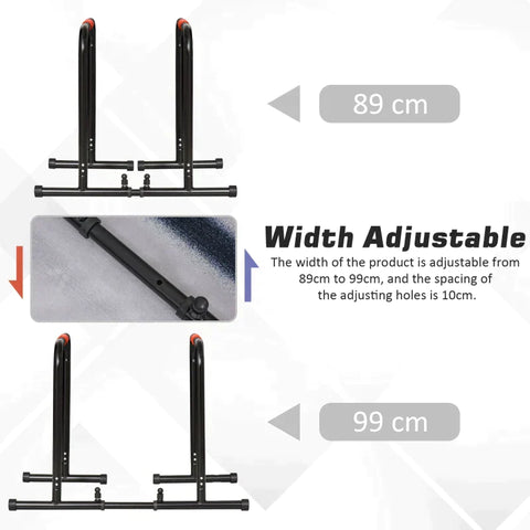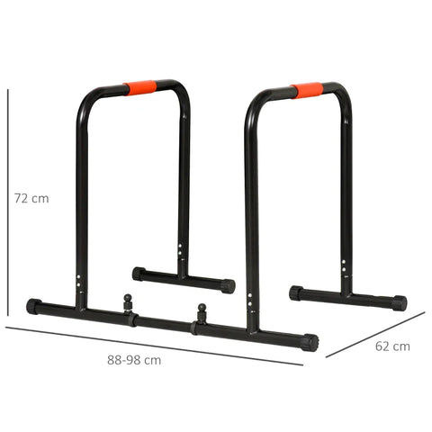 Rootz Dip Stand - Dip Bars - Push Up Dip Station - Adjustable Fitness - Black - 94-102 x 62 x 73 cm