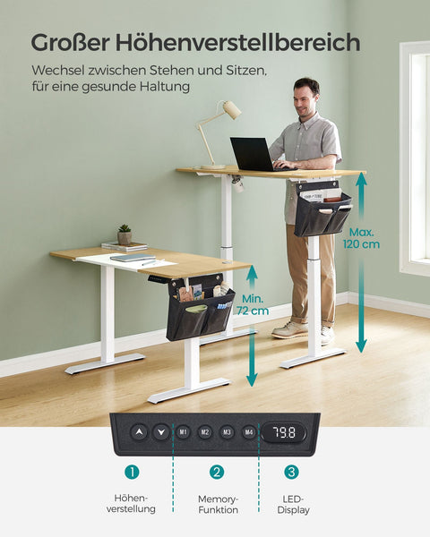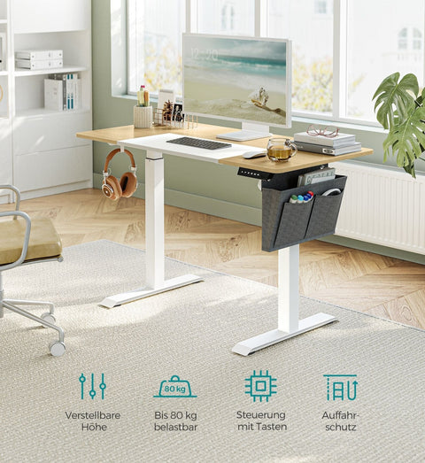 Rootz Electric Desk - Height-Adjustable Table - Motorized Desk - Chipboard Steel - Pastel Yellow - White - 60cm x 120cm x (72-120)cm