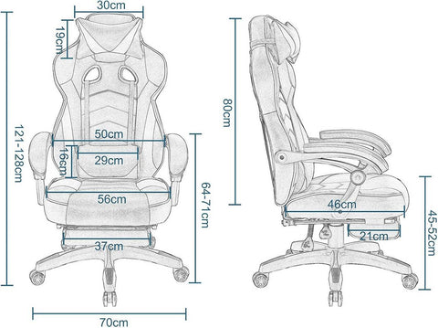 Rootz Gaming Chair - Office Chair - Racing Chair - Adjustable Height & Reclining - Ergonomic Design - 121-128cm x 56cm x 46cm