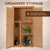 LARGE STORAGE SPACE: With three shelves downstairs and a large space upstairs, this outdoor tool shed lets you store and organize watering cans, spades, pots or long-handled garden tools.
