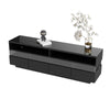 This high-gloss TV cabinet is a stylish and functional piece with dimensions 173.5L x 55W x 38H cm. It features two open compartments, four large drawers, and customizable multi-color LED lighting for an atmospheric atmosphere.