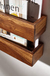 With its classic design and stylish grain, it adds a touch of warmth to any space while providing ample storage with its two compartments and two brackets. Handcrafted from solid sheesham wood, each piece is unique and reflects the beauty of natural materials.