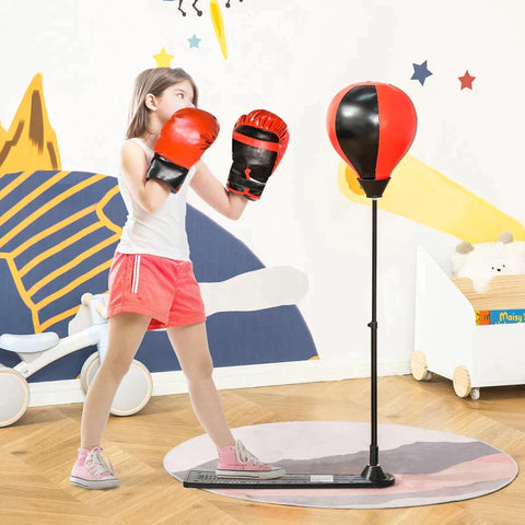 Rootz Punching Ball - Inflatable Punching Ball - Boxing Stand For Children - Adjustable Shaft - Inflatable Pump - Gloves - Black + Red - 67.5 cm x 19 cm x 129.5 cm