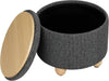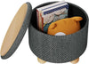 Rootz Round Storage Stool - Ottoman - Footstool - Coarse Linen Cover - High-Density Foam - 39cm x 33cm - Cream White & Gray