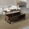 Rootz Side Table With Lifting Function - Hidden Storage Compartment - Walnut Wood Look - Steel Frame - Chipboard - Walnut + Black - 102 x 58 x 35.5 cm