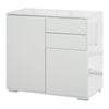 LOTS OF STORAGE: The standing cabinet has two drawers and two cupboards, giving you plenty of space to discreetly store dishes, kitchen accessories and much more. The shelves are height adjustable.