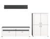 Enhance your living space with the Rootz 3-piece living combination set made of wood material. The set includes a highboard, TV lowboard, and wall shelf, all designed in a timeless grey/white matt finish to complement any decor.
