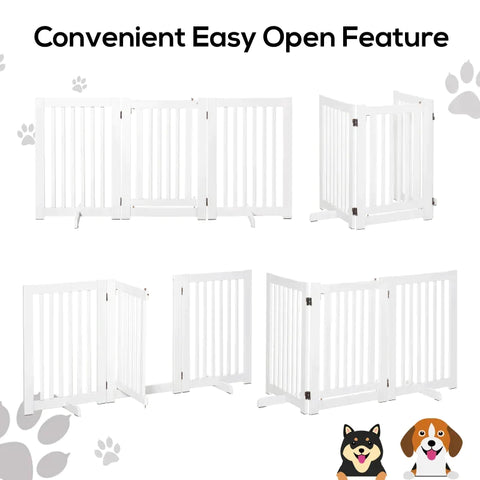 Rootz Wooden Barrier - Free Standing Dog Gate - Door Gate - Adjustable Dog Gate - Foldable Stair Gate - White - 155 x 1.5 x 76 cm