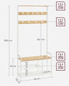 Rootz Wooden Coat Stand - Oak White Coat Hanger - 9 Hooks - Chipboard & Steel - 30cm x 85cm x 180.5cm - Max Load 90kg