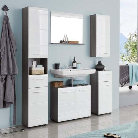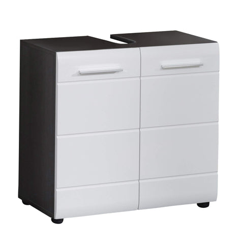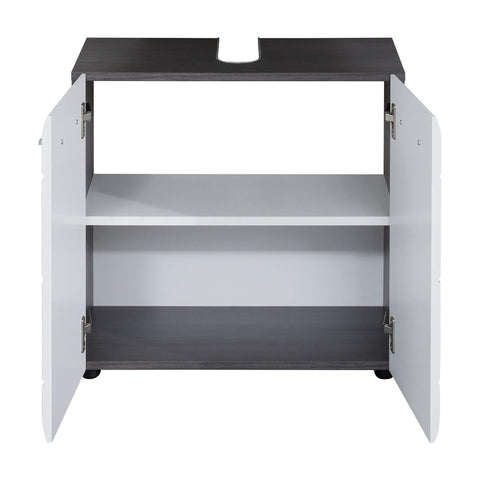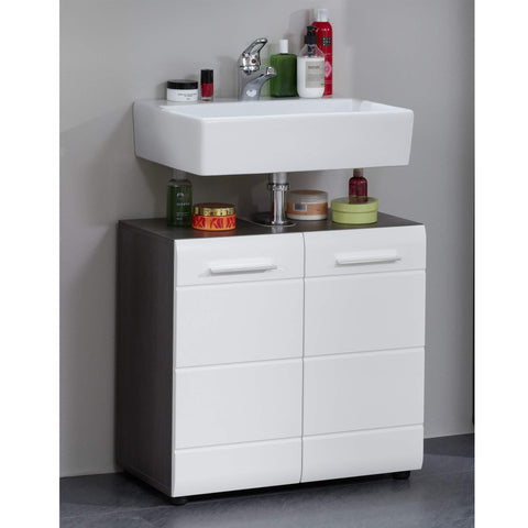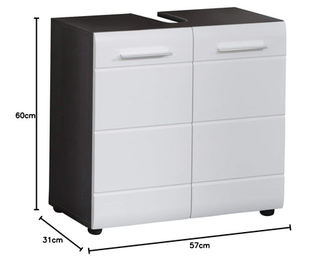 Rootz Vanity Unit - Bathroom Cabinet - Washbasin Storage - Sink Console - Under-Sink Organizer - Bathroom Furniture - Basin Stand - White High Gloss/Smoky Silver - 60x57x31 cm